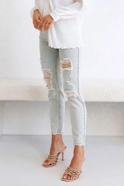 - light wash mid-high rise mom style jeans
