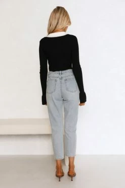 - black knit top with contrasting white collar and neckline