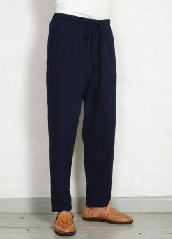 A Japanese real indigo dyed cotton fabric with a waffle weave construction. Characteristics are; light, airy with a beatiful deep shade of indigo. The fabric has been rinse washed to reduce the bleeding of the natural indigo dye.