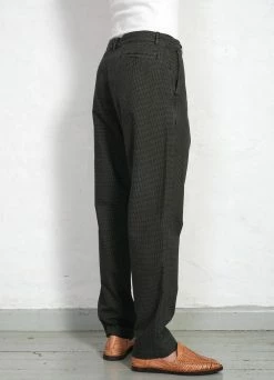A Portugese cotton with a hounds tooth pattern. The fabric is originally black and white, then over-dyed. This process makes a really relaxed and casual feeling. A subtle yet very stylish look that we treasure very highly at HANSEN Garments.