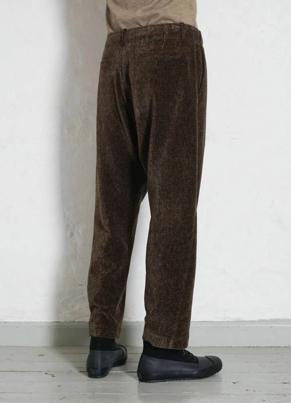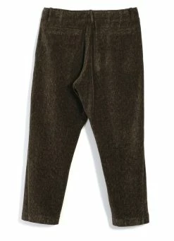TRYGVE is a pair of loosely fitted, slightly tapered and slightly cropped, trousers. It comes with two slanted front pockets and two patched on back pockets. The side seams are slightly twisted, providing an organic shape from the knee down.
