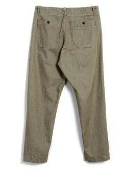 TRYGVE is a pair of loosely fitted, slightly tapered and slightly cropped, trousers. It comes with two slanted front pockets and two patched on back pockets. The side seams are slightly twisted, providing an organic shape from the knee down.