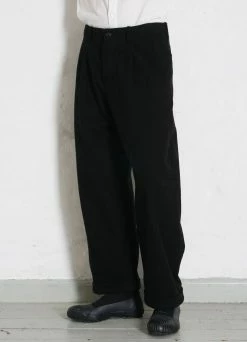 TRYGVE is a pair of loosely fitted, slightly tapered and slightly cropped, trousers. It comes with two slanted front pockets and two welted back pockets. The side seams are slightly twisted, providing an organic shape from the knee down.