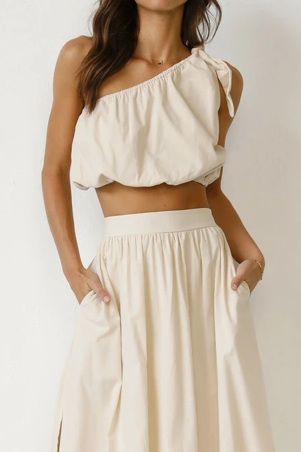 - one shoulder beige top