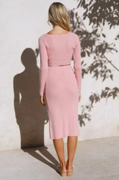 - pink knit midi skirt