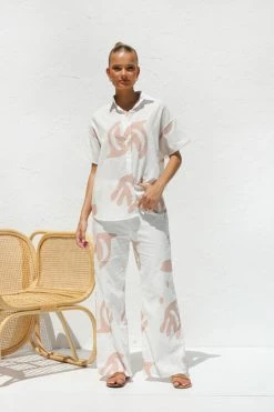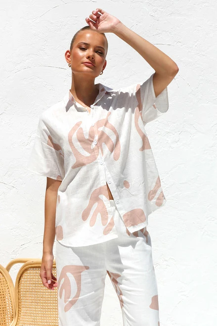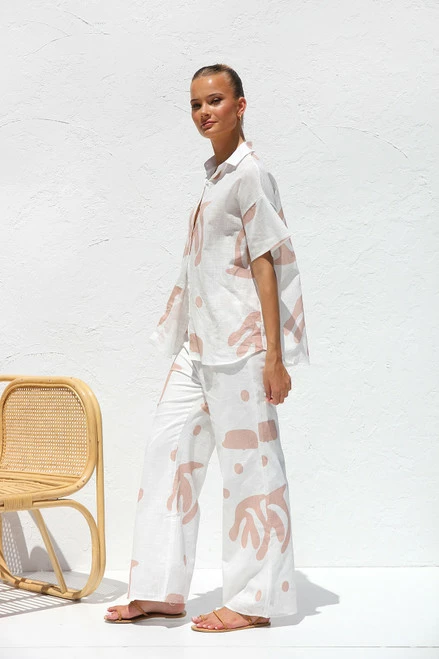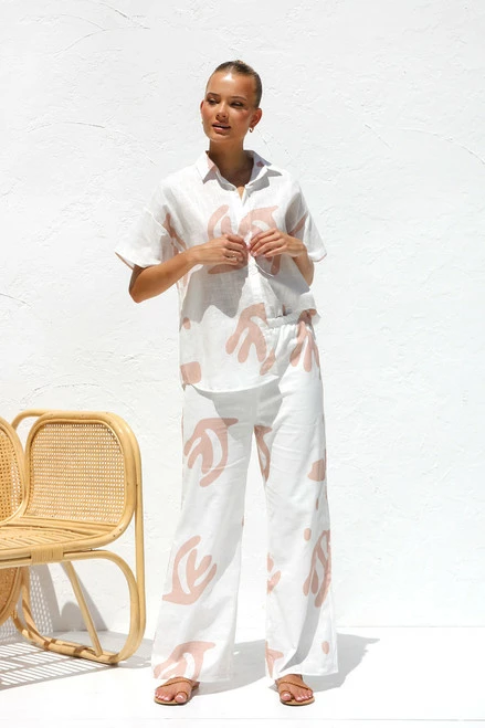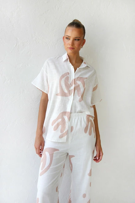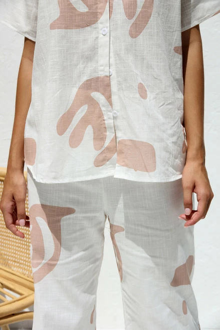 - neutral print shirt and pant set