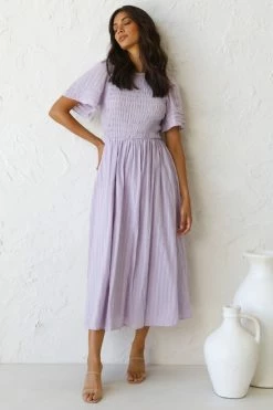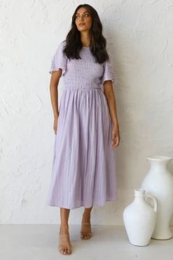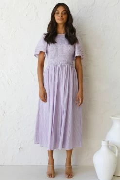 - short sleeve lilac midi dress