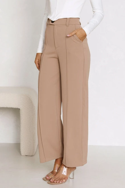 - wide leg pants in camel