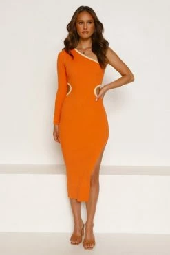 - orange knit midi dress